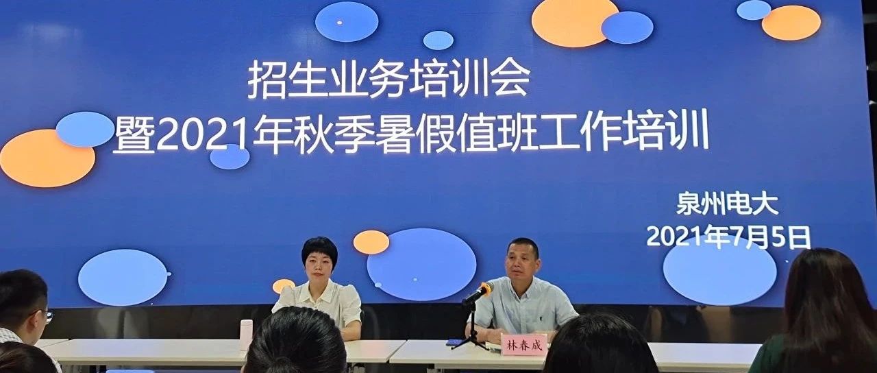 今天上午9:00,泉州电大举办招生业务培训会暨2021年秋季暑假值班工作培训,林春成副校长出席会议,40周岁以下的青年教师参加会议,会议由招生办负责人庄美美主持...…