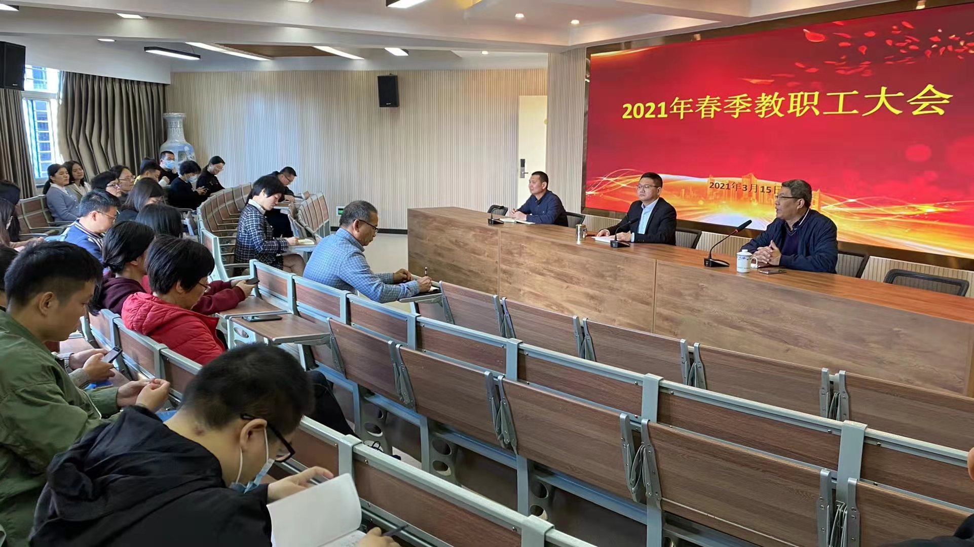紧扣质量谋提升 凝心聚力谱新篇3月15日上午,泉州电大召开全体教职工大会,会议由党总支副书记郑少俊同志主持,会议围绕“质量提升年”的主题对2021年学校工作进行强调部署。会上,陈向荣书记(校...…