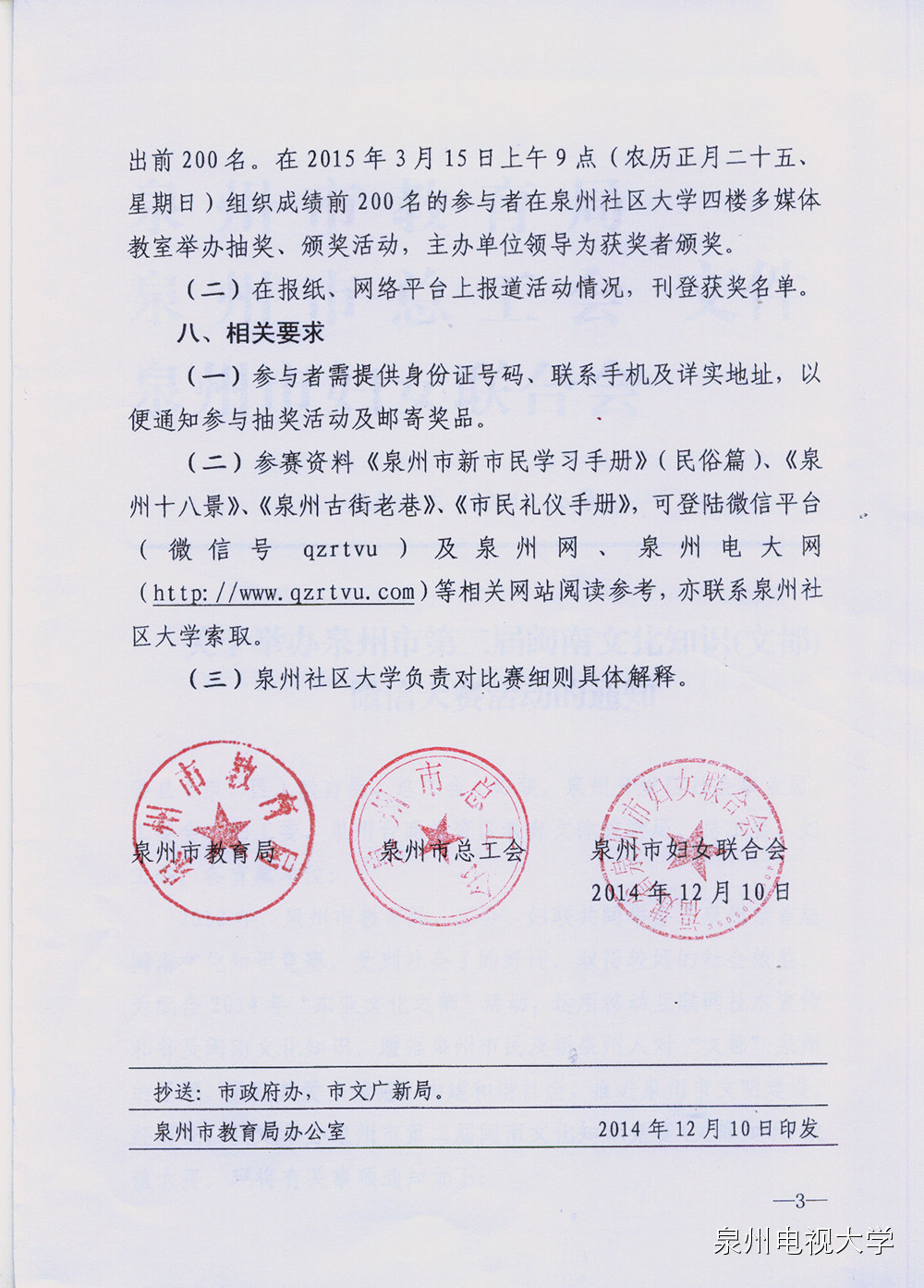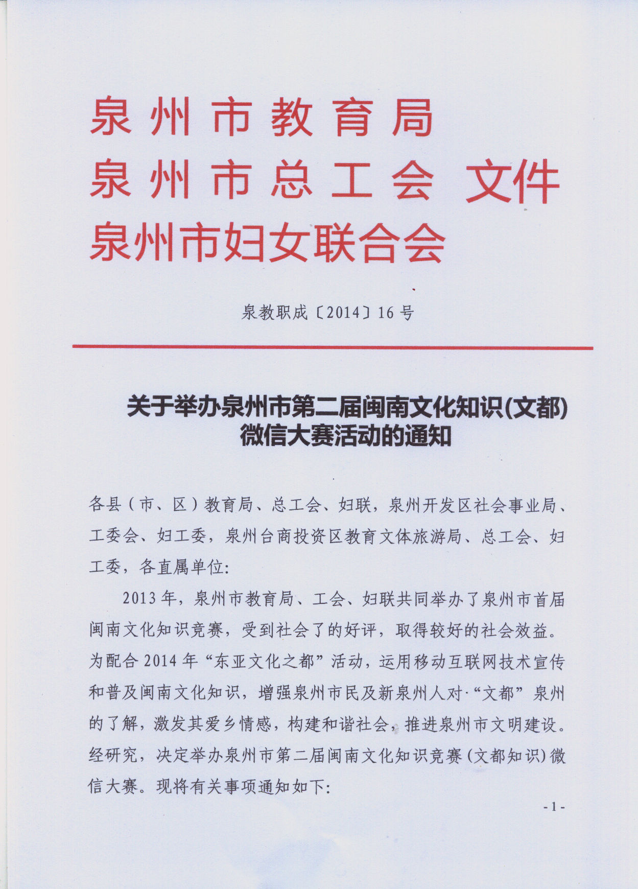 关于举办泉州市第二届闽南文化知识(文都)微信大赛活动通知