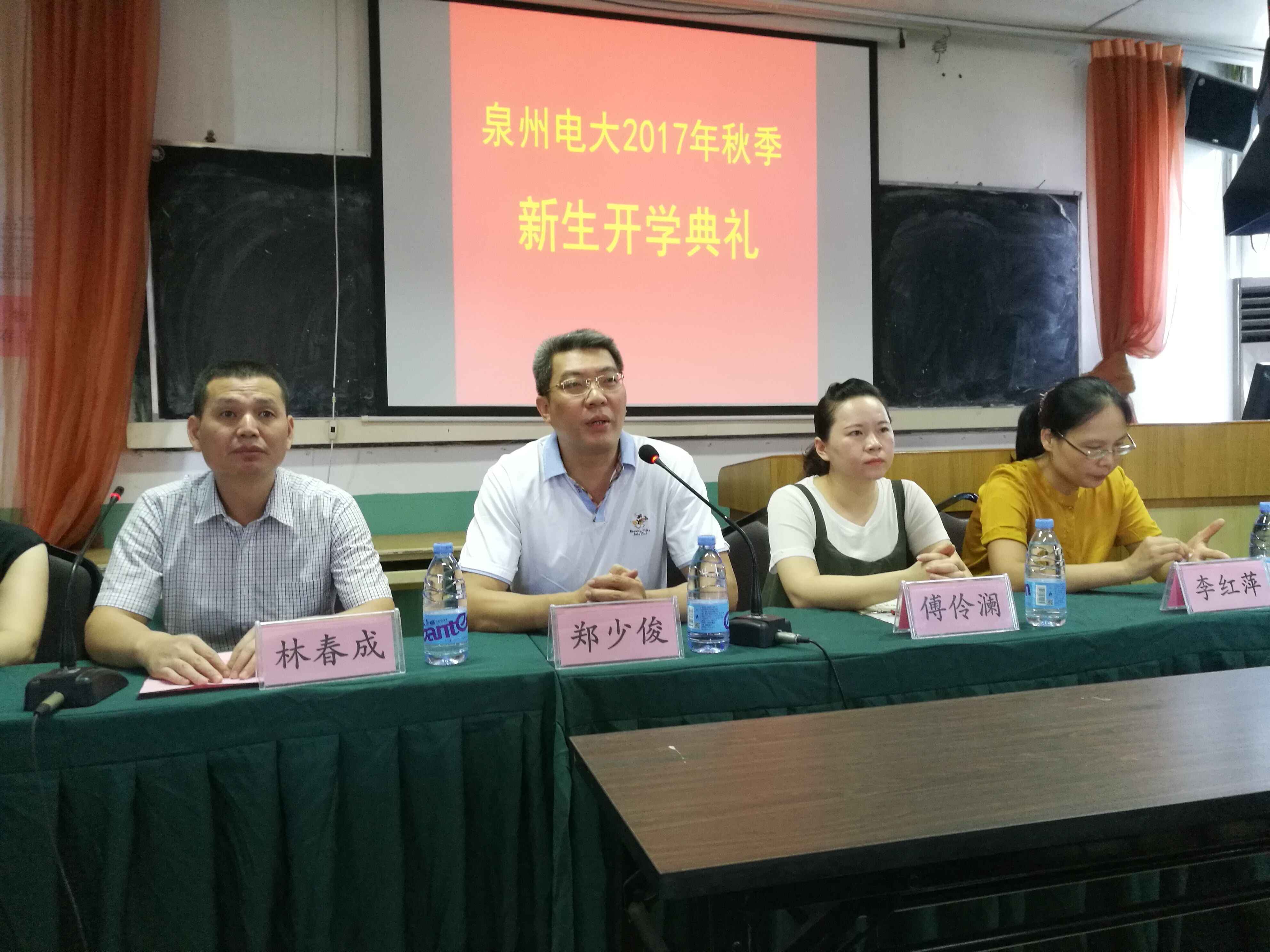 9月17日上午,泉州电视大学在北楼五楼举行2017年秋季开放教育新生入学开学典礼。学校党委副书记郑少俊,副校长林春成及学校相关部门负责人等同志出席了此次开学典礼。