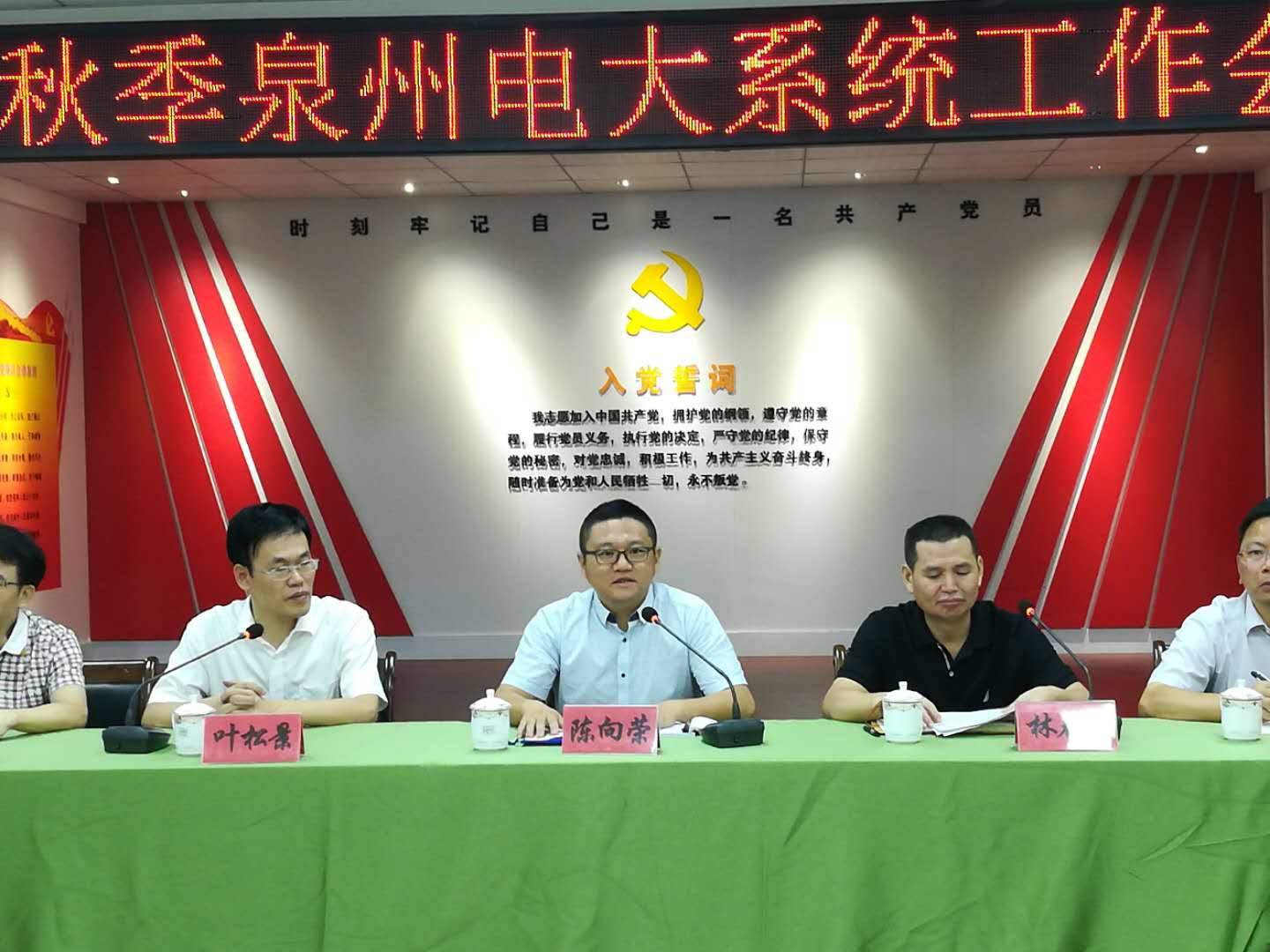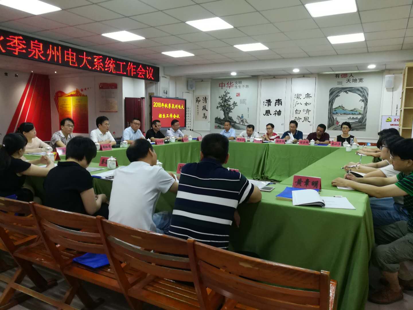 为进一步加强2018年秋季全市电大系统招生工作。9月4日,泉州电大在安溪电大召开了全市电大系统工作会议,泉州分校校领导及相关处室负责人,各县(市、区)工作站(学院)长参加了会议,安溪县副县长叶松景、县教育局?局长赖加团等到会指导、关心。会议由泉州分校副校长林春成主持。