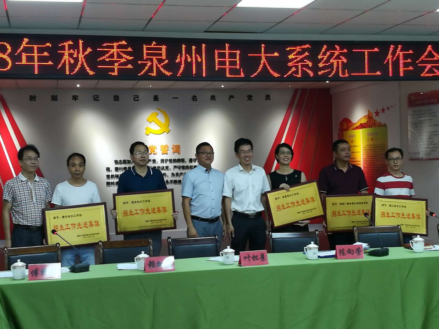 会议还通报表彰了安溪电大、南安电大、晋江电大、惠安电大、德化电大等5个单位2018年春季招生工作先进集体。