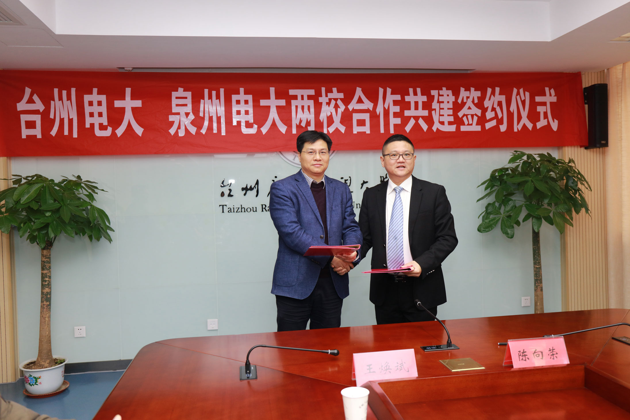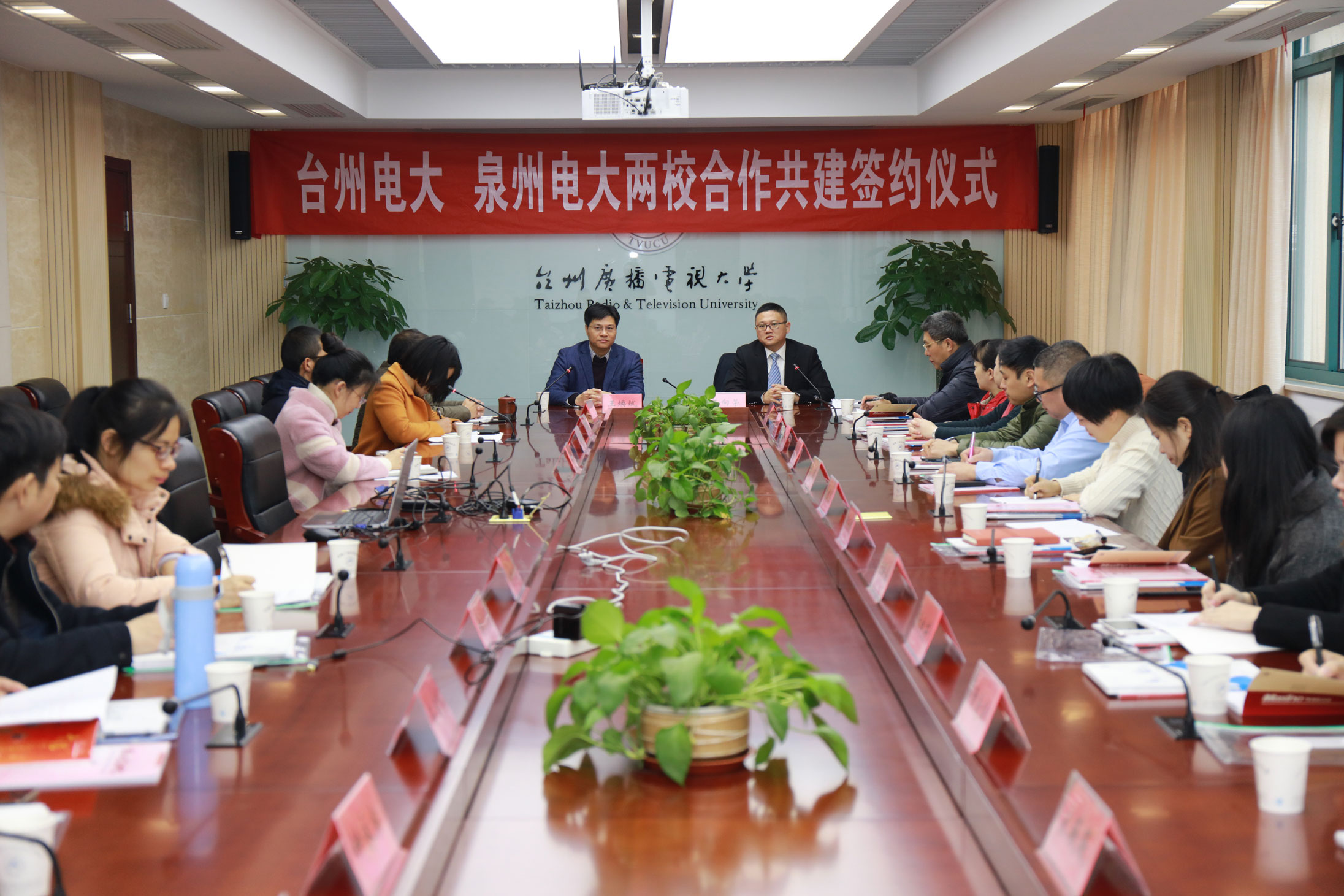 我校陈向荣书记(校长)、郑少俊副书记、部分中层干部及工作站长(院长),台州广播电视大学潘先考书记、王焕斌校长、庞君乾副校长,台州广播电视大学社区学院丁亚萍院长、范正辉副院长等参加了签约仪式。签约仪式由台州广播电视大学社区学院丁亚萍院长主持。陈向荣书记(校长)与王焕斌校长分别致辞并签订了《泉州广播电视大学、台州广播电视大学合作共建协议》。