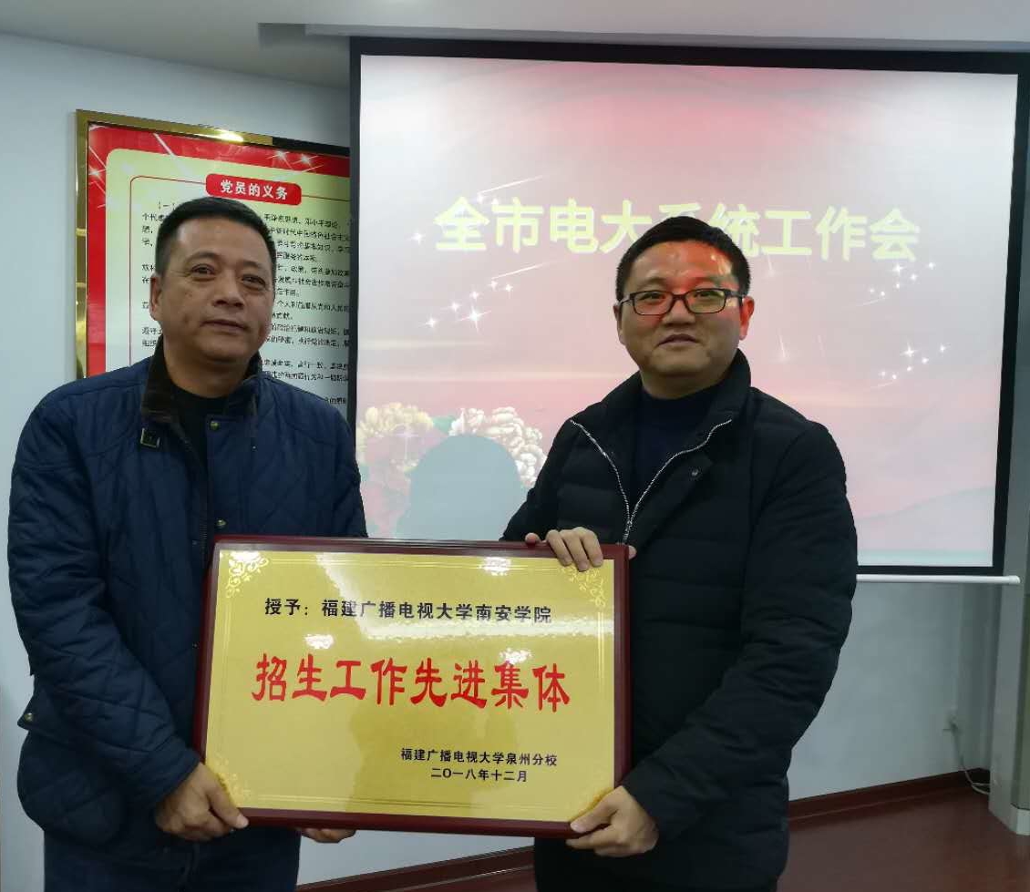 会上,郑少俊副书记宣读了《关于表彰开放教育招生工作先进集体的决定》,陈向荣书记(校长)向获奖的工作站(学院)颁发奖牌。