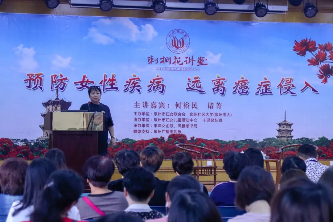 11月2日下午,由泉州社区大学(泉州电大)和泉州市妇联主办的刺桐花讲堂大型公益健康专题讲座《预防女性疾病,远离癌症侵入》在泉州市妇女儿童活动中心C幢二楼多功能厅举行,近200人参加了本次活动。