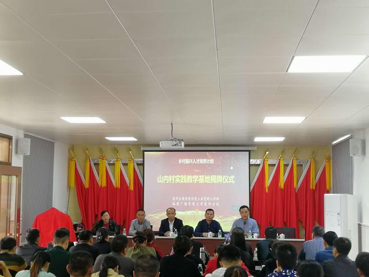 2019年11月22日,为贯彻落实党的十九大提出的乡村振兴战略和全国、全省、全市组织工作会议精神,建立一支政治过硬、本领高强,懂农业、爱农村的农村实用人才队伍,泉州台商投资区党群工作部与泉州电大共同在台商区张坂镇山内村、仑前村举行了隆重的乡村振兴人才培养“实践教学基地”揭牌仪式并组织“乡村振兴人才学历提升计划”台商区农村行政管理专科班学员开展现场教学活动,学习美丽乡村建设及村务管理先进经验。泉州电大副校长林春成,台商投资区党工委正科级组织员、党群工作部部务会议成员朱子良,泉州电大培训处主任辜阳波,教务处主任傅伶澜,副主任庄奕强、教学支部书记黄文伟,山内村党支部书记苏庆金、党支部副书记兼村主任苏强强、仑前村党支部书记林小榕等出席了揭牌仪式。
