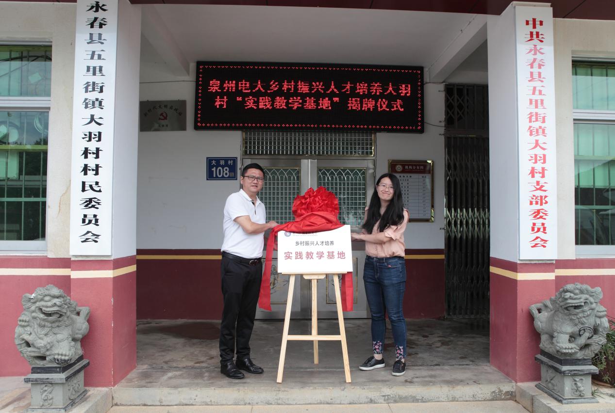 6月11日,泉州电大分别在永春大羽村和吴岭村举行乡村振兴人才培养“实践教学基地”签约揭牌仪式,开启了泉州电大与永春县乡村振兴合作共建的新篇章。泉州电大校长陈向荣、永春县人民政府副县长董婧、泉州电大副校长林春成、永春县教育局局长陈文榜、副局长黄茂华、泉州电大教务处负责人李红萍等领导和嘉宾出席揭牌仪式。