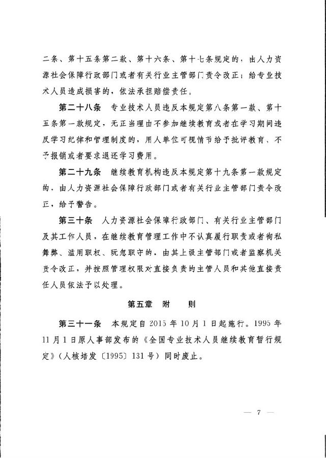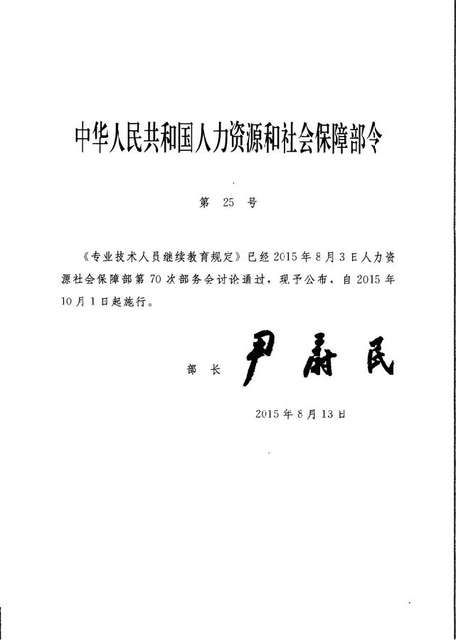 ★【政策】专业技术人员继续教育规定(人社部令第25号)