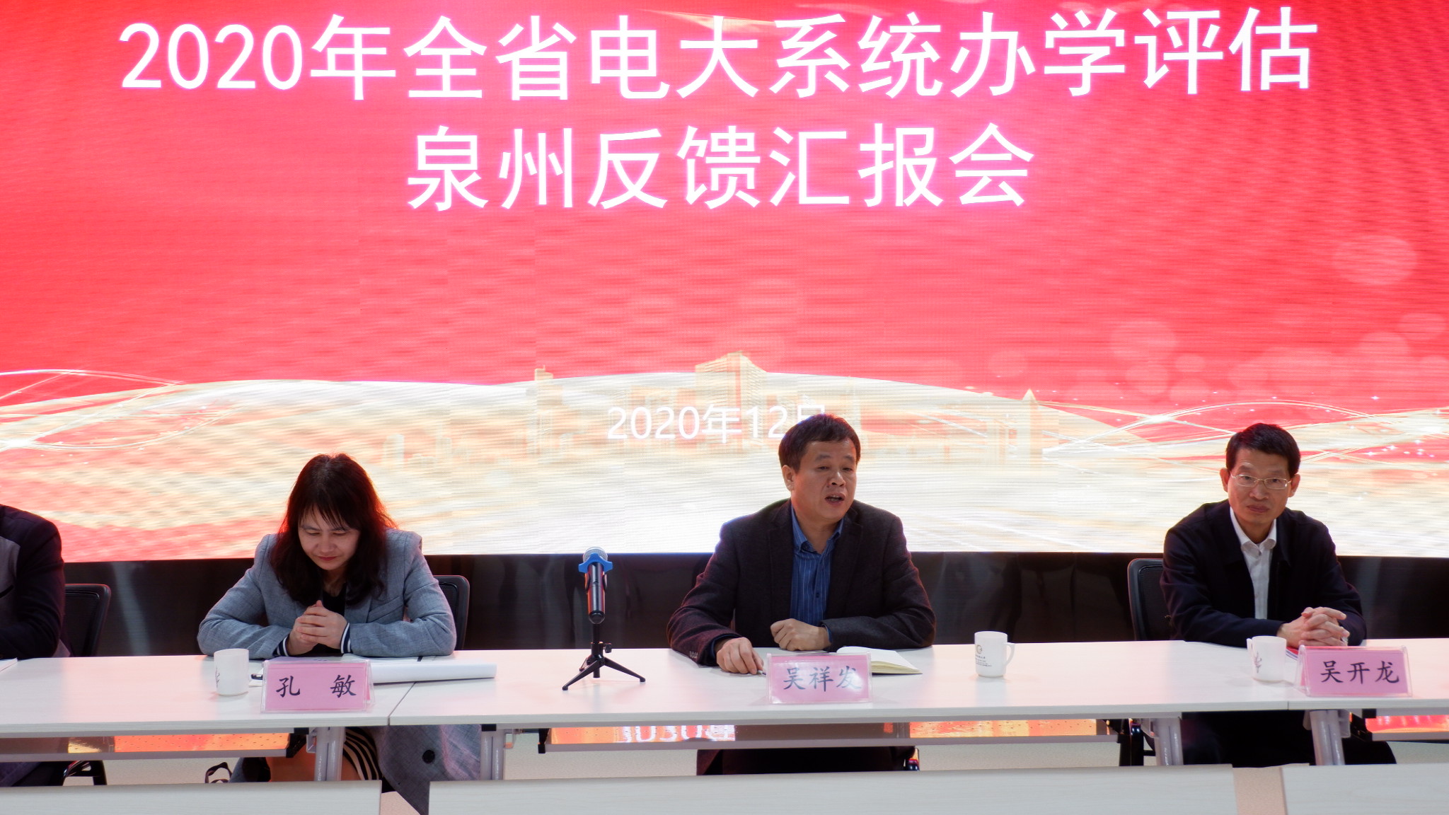 12月9日上午,根据全省电大办学评估工作安排,学校召开了2020 年全省电大系统办学评估泉州反馈汇报会。评估组组长吴祥发,评估专家组成员吴开龙、孔敏、郑萍、谷俊松,泉州电大书记(校长)陈向荣、副书记郑少俊、副校长林春成,各县(市、区)工作站站长(学院院长)及学校各处室负责人参加了会议。