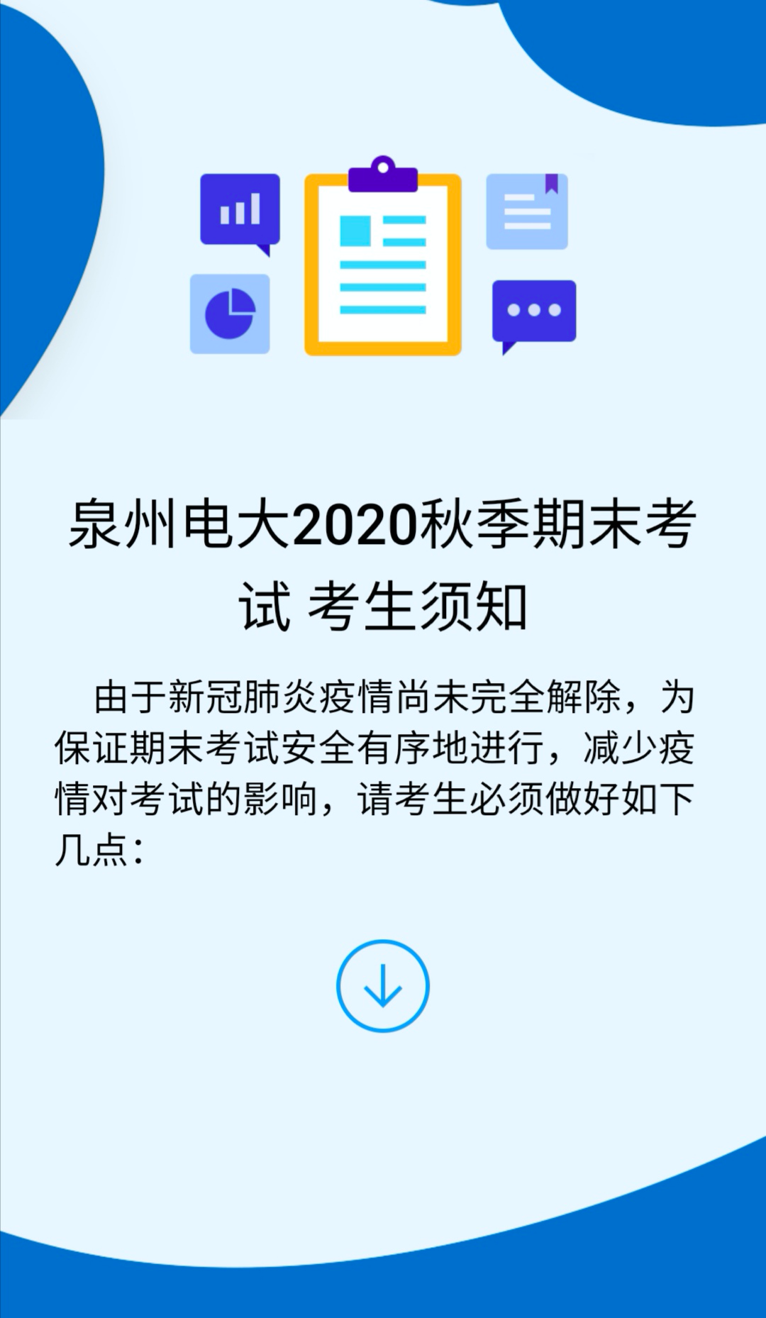 请各位同学及时查阅班主任下发的通知,积极配合班主任工作,认真做好考前复习及准备工作,祝各位同学考试顺利!