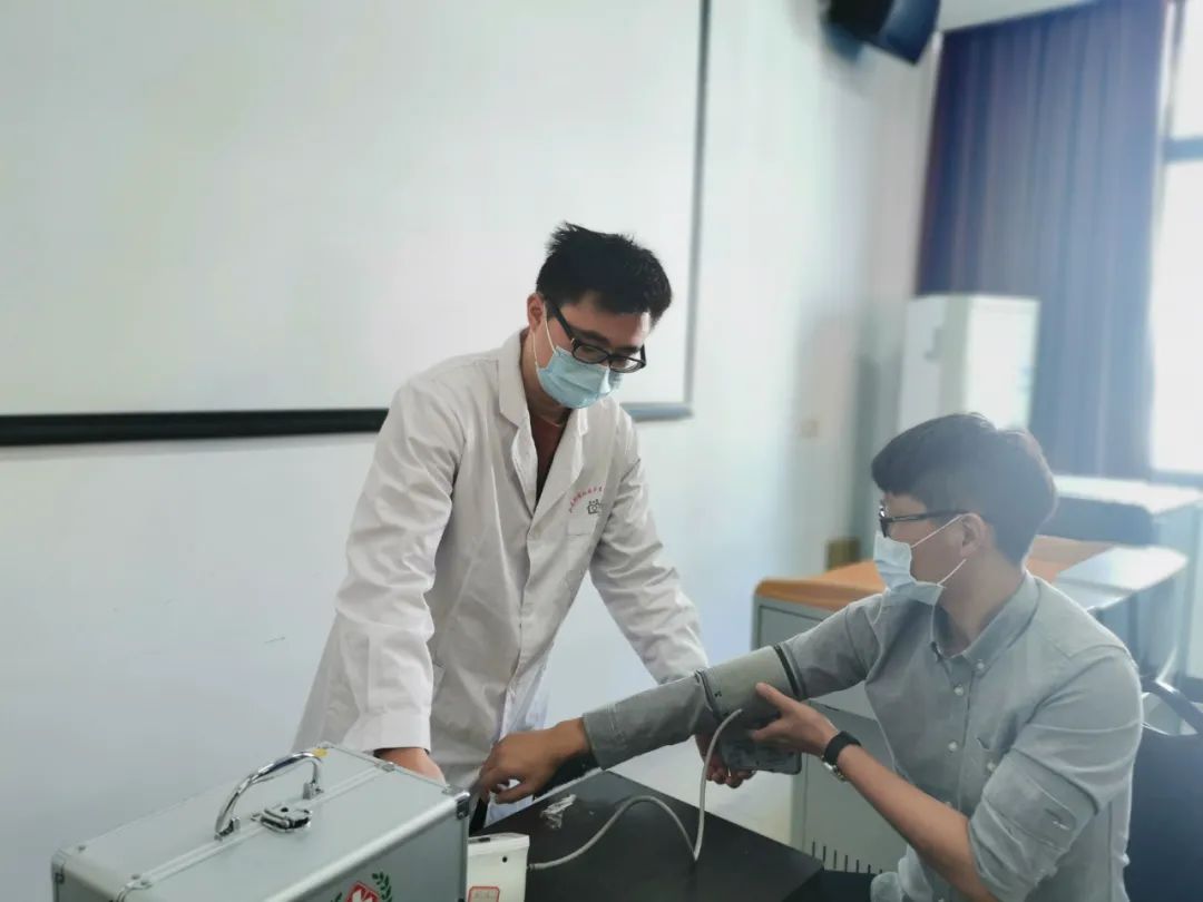社区医务人员为学生检查身体