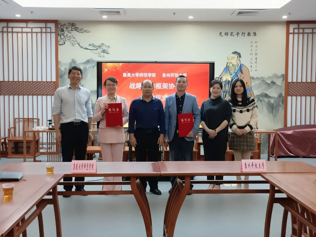 今年,我校与集美大学师范学院就培训、教研等方面签署框架合作协议,双方在教学实践基地共建、名师课堂线上合作、师资共享等方面达成了共识。本次战略合作以提高人才培养质量,服务地方为目标,以两校研学培训基地建设为平台,旨在通过整合双方优势资源,积极探索基础教育科研、培训新模式,共同开发优势项目,强化专业合作共建与实训基地共享,推动双方教育培训再上新台阶。2021年鲤城区中小学校中层管理干部异地研修活动是我校与集美大学合作共建后首次开展的活动,活动内容更加丰富,活动形式更加多样。根据学员特点分班授课,让学习更具针对性、研修更具实践性,该研修活动在师资团队、课程组织等方面获得了学员的高度评价以及主办方的充分肯定。今后,我校将积极在全国范围内与各大高校谋求更大范围、更深领域的优质教育资源合作。■ ■ 学员分享培训收获,与老师交流学习 ■ ■