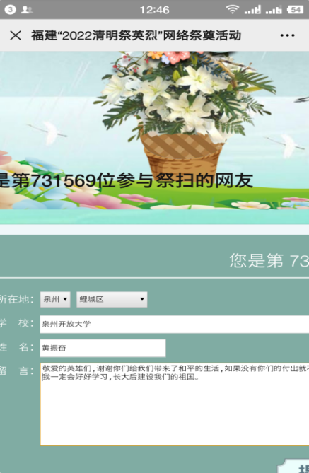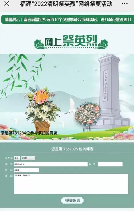 弘扬英烈精神 赓续红色血脉——泉州开放大学开展“清明网上祭英烈”活动