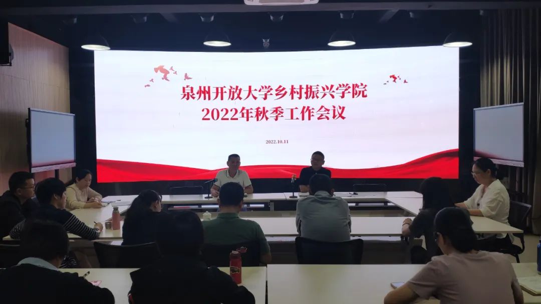 最后,书记、校长陈向荣对各成员的发言进行点评并对乡村振兴学院的发展提出要求。他强调,一要开拓思路,转变工作思维,立足于乡村振兴学院赋予自身的角色定位,不断探索推动“学历+培训+科研”三位一体发展;二要聚焦项目策划和拓展,以需求为导向,围绕党委政府工作重点及社会热点谋划项目;三要多方位整合教学资源,做到上诚聘国内知名专家、内聚各成员单位精英、下汇乡村振兴实践典范高效;四要构建培训流程,全方位服务学员,打造“有料、有趣、有效”的精品培训项目,争取做成村官培训基地;五要请进来走出去,持续开拓共建省内外办学培训基地,把本地学员带出去、把外地学员请进来交流学习;六要加强品牌建设,扎根于乡村乡土,不断培育新型乡村振兴人才,将学院建设成泉州市乡村振兴工作研究高地、乡村振兴人才培养基地、乡村振兴实践指导营地。